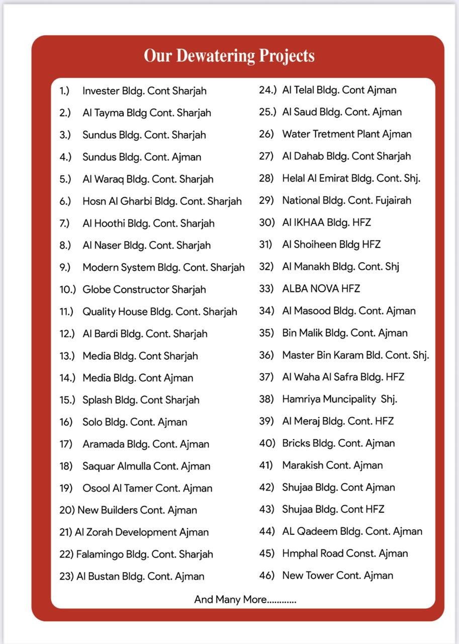 Tarbela Water Supply & Dewatering LLC – Established in 1995, we provide reliable water supply, dewatering, shoring, services across Ajman and the UAE. Trusted experts with 24/7 support and advanced equipment.